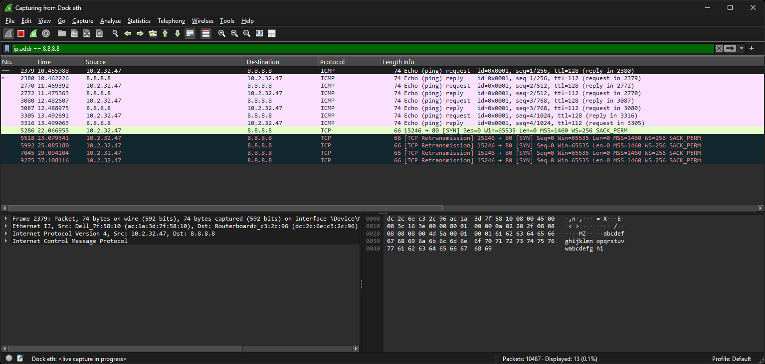 - Checking communication by protocol, port, MAC, or broadcast patterns
