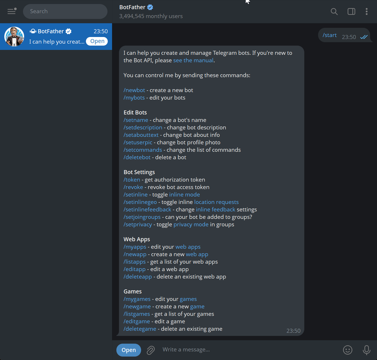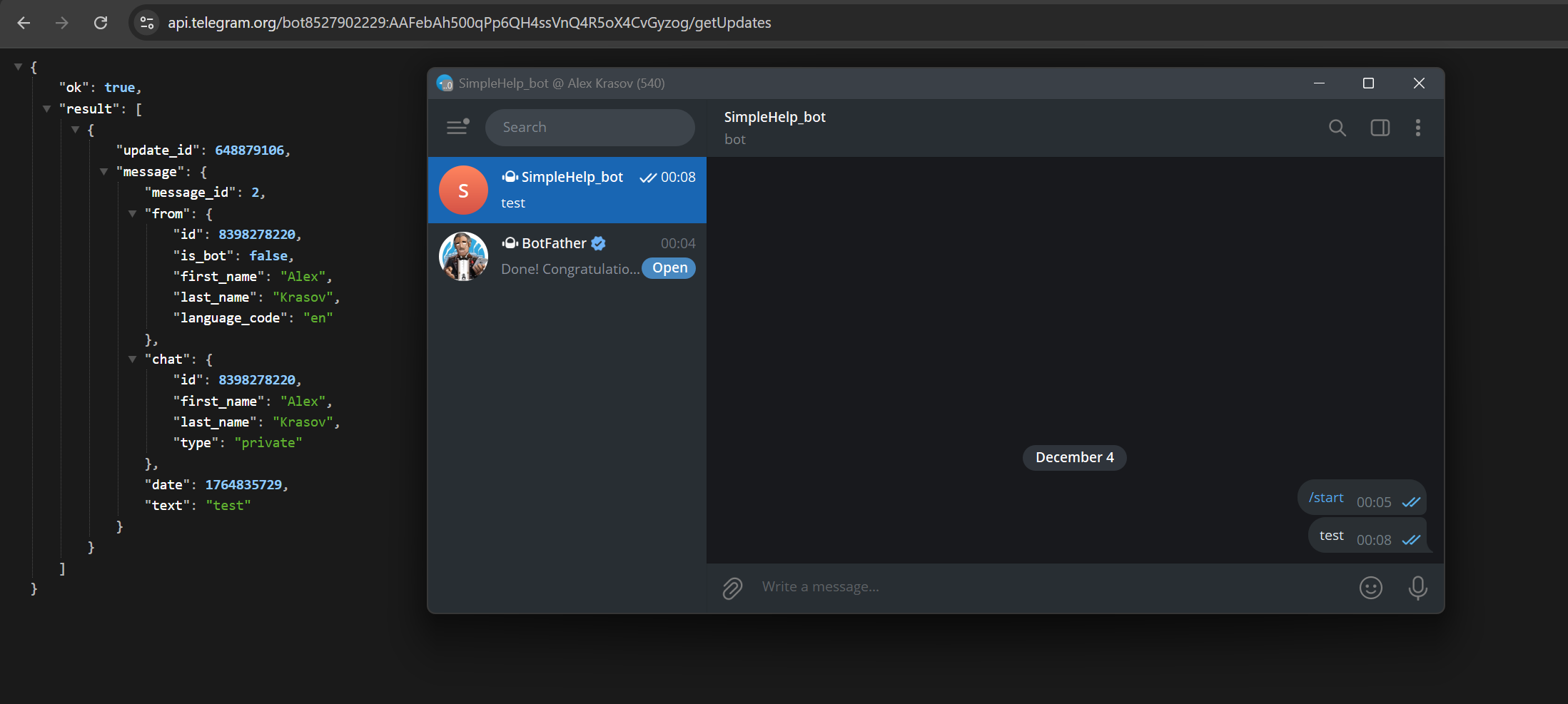 In fact, to send your very first message to a chat, all you need is to execute a properly constructed URL – you can even open it in a regular browser.